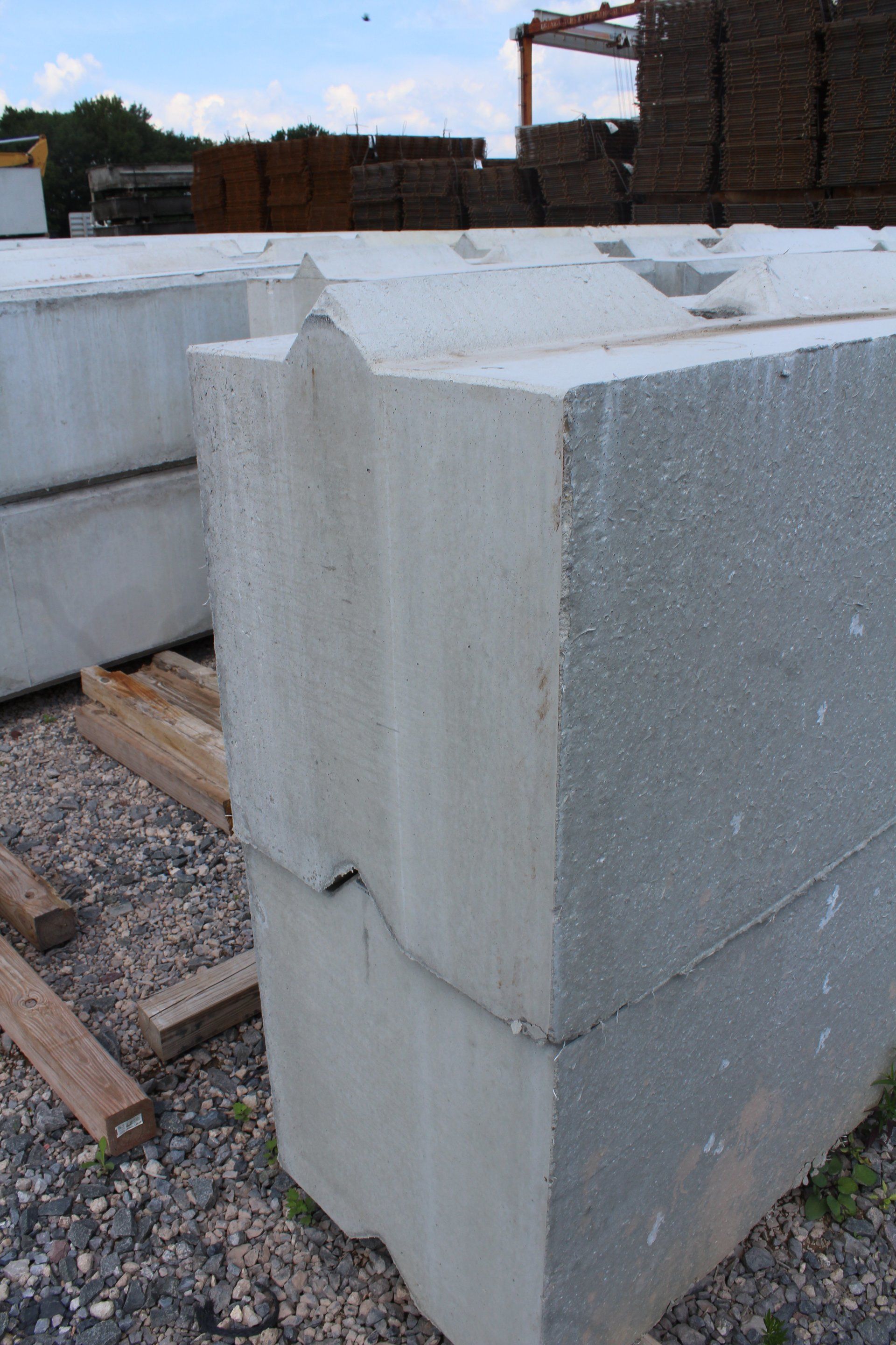 Structural concrete Bin/Material Organizer Blocks are high quality with a clean finish and made in a better mold than most companies use. They are bigger (2’ x 2’ x 8’) than most and weigh around 4500 lbs. They are grooved on the top and bottom for interlocking strength and ease of stacking. There are flush mount lifting points located on top of each block. These are great for organizing materials in a construction/landscaping yard, retaining walls, roadblocks and tent anchors or counterweights.